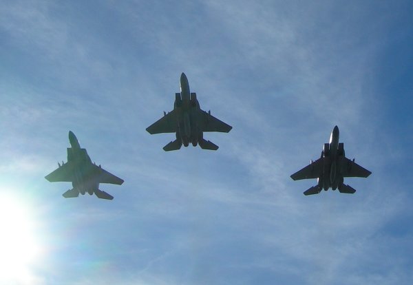low pass by three F-15 Eagles, the call went out "Drivers, start your