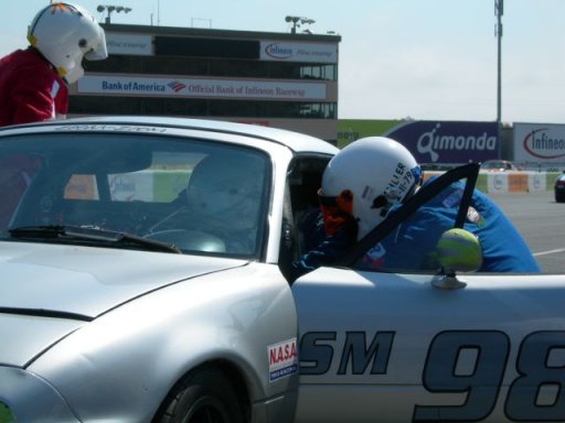 also drove the car for two laps before turning the Miata over to Ron to