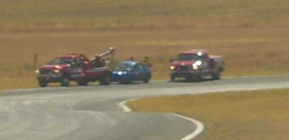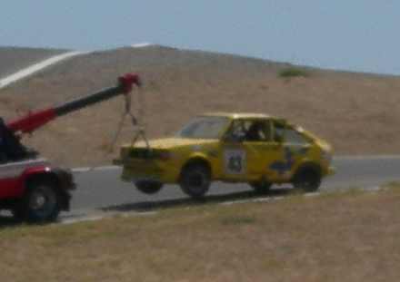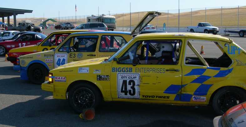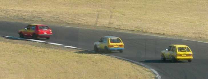 dropped off the pavement and into the dirt. The VW Rabbit GTI,