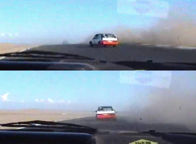 putting a dust cloud and a car in the middle of the track, right as Ron