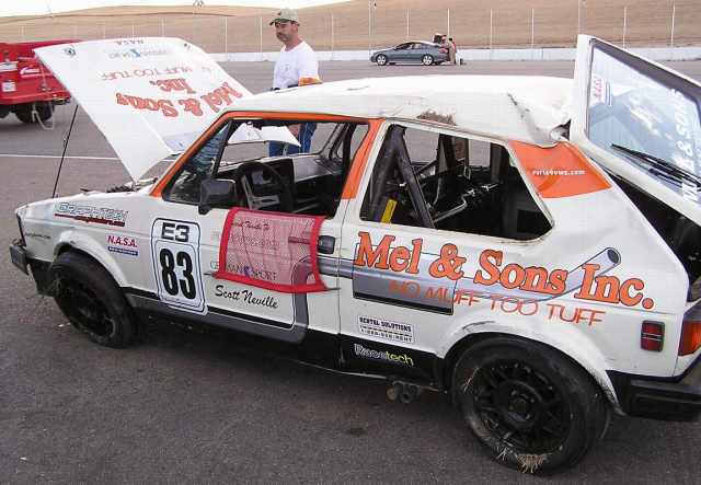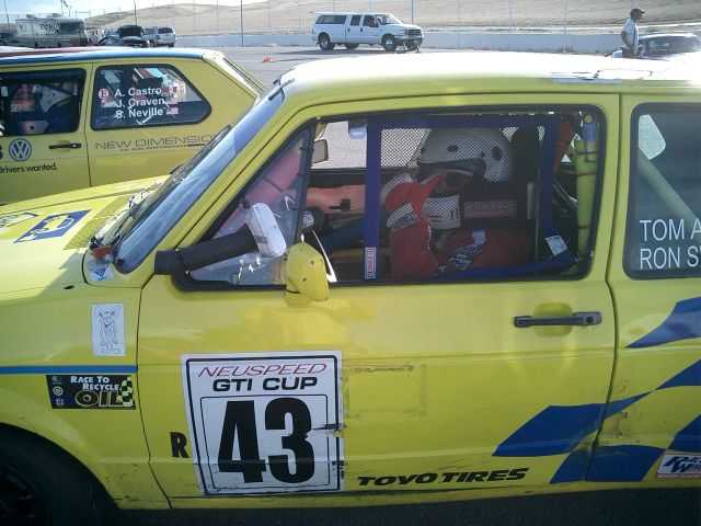 restart, the white Miata dive bombed inside Ron, nearly shoving him off